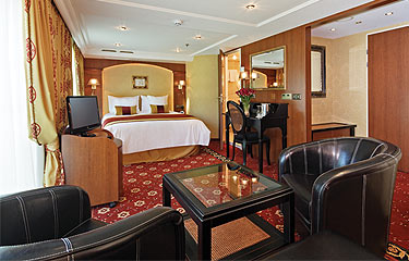 - Two 110-volt and two 220-volt outlets included in every cabin for small electronics; minibar stocked with complimentary water and soft drinks