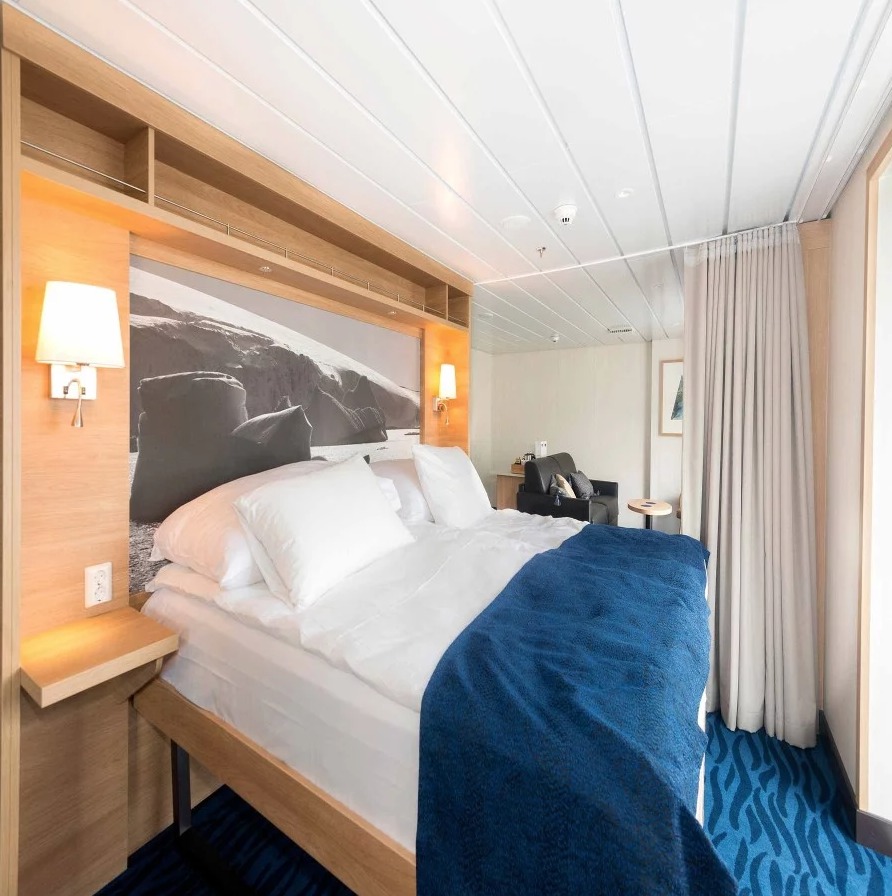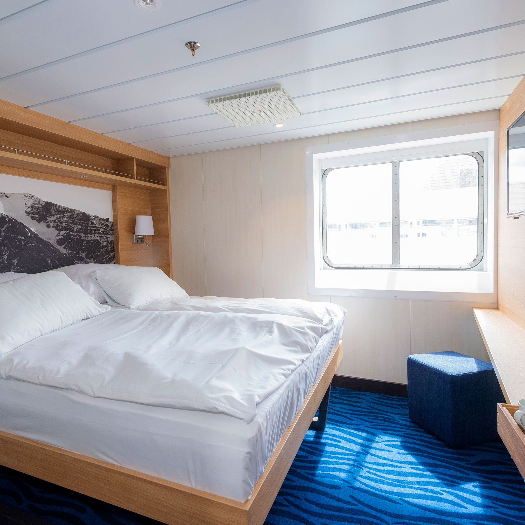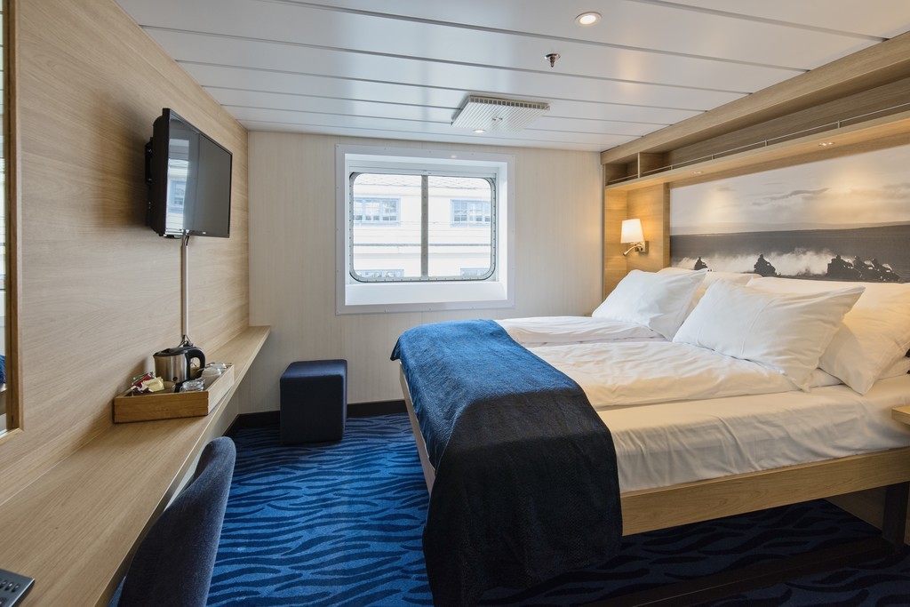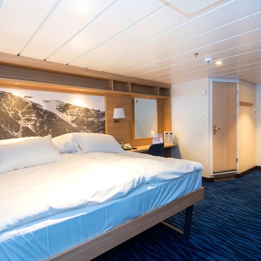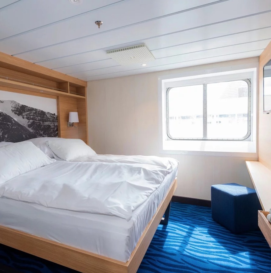 After complete reconstruction, MS Spitsbergen joined the Hurtigruten fleet in 2016. The ship features high technical standards as well as comfortable, modern public areas and cabins. The vessel´s fresh Scandinavian design reflects a colour palette derived from the sea. She is modern and environmentally progressive, and we plan further improvements that will reduce emissions and fuel consumption even more. The new ship’s maneuverability and optimal size make her quite suitable for exploring polar waters.