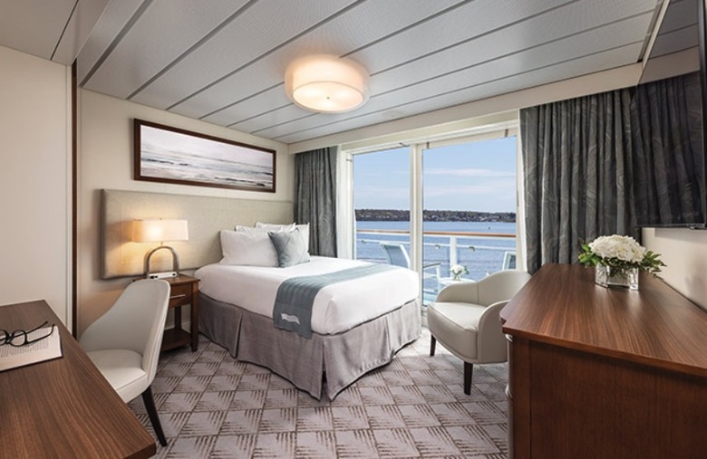 The interior design of American Maverick features a serene color palette, creating a tranquil ambiance throughout. Guests can unwind in a range of large standard staterooms, suites, or singles, each equipped with a private balcony for enjoying scenic views of the New England Coast.