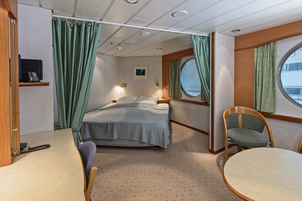 These standard outside cabins for up to two people on the middle decks have separate beds, one of which converts into a sofa.