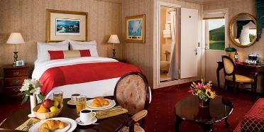 A Our Category SW, 183 sq. ft. staterooms are ideally located with easy access to the lounge and dining room. Your tastefully decorated room features a comfortable seating area and private bathroom.